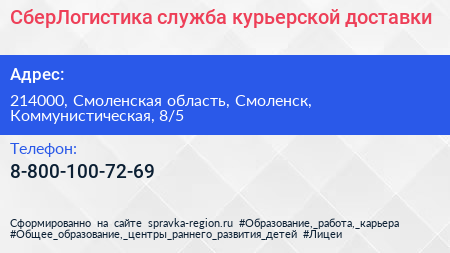 СберЛогистика, служба курьерской доставки по адресу 214000, Смоленская область, Смоленск, Коммунистическая, 8/5 в дальнейшем Организация, размещена в следующих категориях: