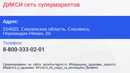 ДИКСИ, сеть супермаркетов по адресу 214025, Смоленская область, Смоленск, Нормандия-Неман, 26 в дальнейшем Организация, размещена в следующих категориях:
