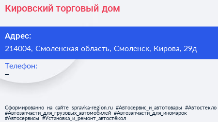 Кировский, торговый дом по адресу 214004, Смоленская область, Смоленск, Кирова, 29д в дальнейшем Организация, размещена в следующих категориях: