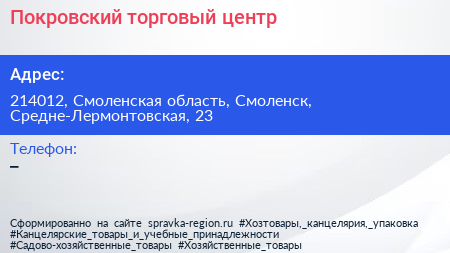 Покровский, торговый центр по адресу 214012, Смоленская область, Смоленск, Средне-Лермонтовская, 23 в дальнейшем Организация, размещена в следующих категориях: