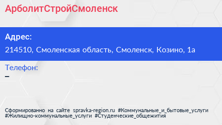 АрболитСтройСмоленск по адресу 214510, Смоленская область, Смоленск, Козино, 1а в дальнейшем Организация, размещена в следующих категориях: