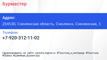 Бурмастер по адресу 214530, Смоленская область, Смоленск, Смоленская, 1 в дальнейшем Организация, размещена в следующих категориях: