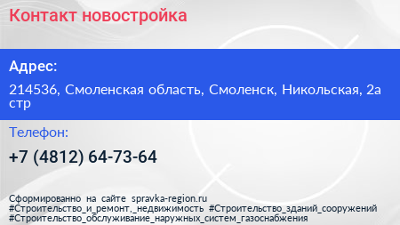 Контакт, новостройка по адресу 214536, Смоленская область, Смоленск, Никольская, 2а стр в дальнейшем Организация, размещена в следующих категориях: