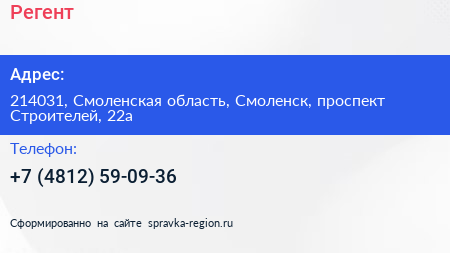 Регент по адресу 214031, Смоленская область, Смоленск, проспект Строителей, 22а в дальнейшем Организация, размещена в следующих категориях: