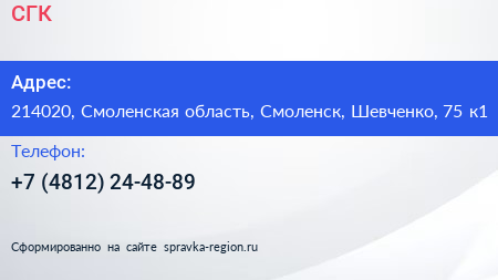 СГК по адресу 214020, Смоленская область, Смоленск, Шевченко, 75 к1 в дальнейшем Организация, размещена в следующих категориях: