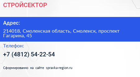 СТРОЙСЕКТОР по адресу 214018, Смоленская область, Смоленск, проспект Гагарина, 45 в дальнейшем Организация, размещена в следующих категориях: