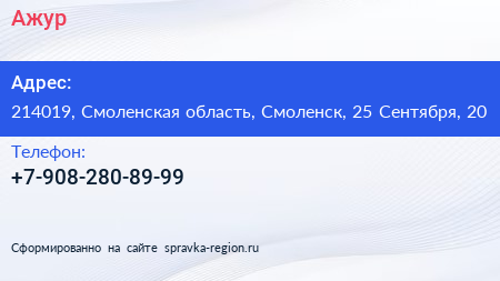 Ажур по адресу 214019, Смоленская область, Смоленск, 25 Сентября, 20 в дальнейшем Организация, размещена в следующих категориях: