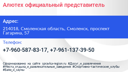 Алютех, официальный представитель по адресу 214018, Смоленская область, Смоленск, проспект Гагарина, 57 в дальнейшем Организация, размещена в следующих категориях: