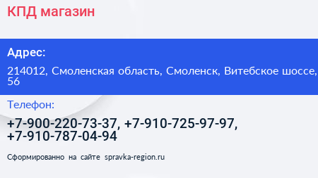 КПД, магазин по адресу 214012, Смоленская область, Смоленск, Витебское шоссе, 56 в дальнейшем Организация, размещена в следующих категориях: