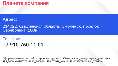 Планета, компания по адресу 214022, Смоленская область, Смоленск, посёлок Серебрянка, 100в в дальнейшем Организация, размещена в следующих категориях: