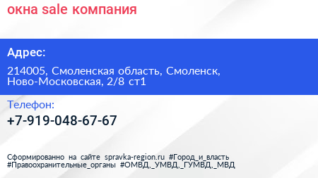 окна.sale, компания по адресу 214005, Смоленская область, Смоленск, Ново-Московская, 2/8 ст1 в дальнейшем Организация, размещена в следующих категориях: