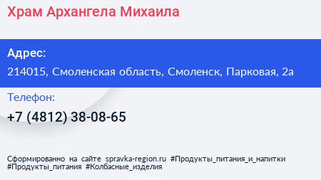 Храм Архангела Михаила по адресу 214015, Смоленская область, Смоленск, Парковая, 2а в дальнейшем Организация, размещена в следующих категориях: