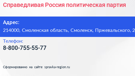 Справедливая Россия, политическая партия по адресу 214000, Смоленская область, Смоленск, Пржевальского, 2 в дальнейшем Организация, размещена в следующих категориях: