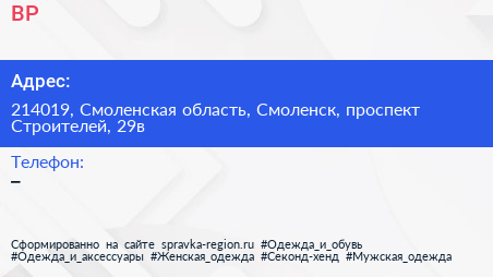 BP по адресу 214019, Смоленская область, Смоленск, проспект Строителей, 29в в дальнейшем Организация, размещена в следующих категориях: