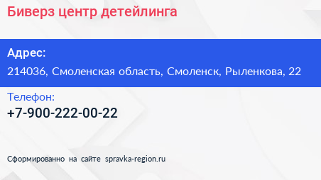 Биверз, центр детейлинга по адресу 214036, Смоленская область, Смоленск, Рыленкова, 22 в дальнейшем Организация, размещена в следующих категориях: