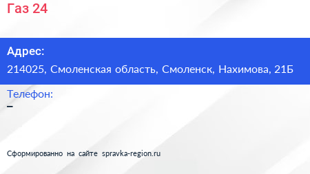 Газ-24 по адресу 214025, Смоленская область, Смоленск, Нахимова, 21Б в дальнейшем Организация, размещена в следующих категориях: