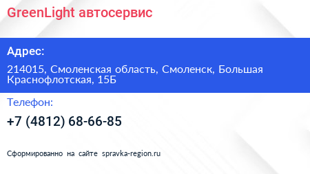 GreenLight, автосервис по адресу 214015, Смоленская область, Смоленск, Большая Краснофлотская, 15Б в дальнейшем Организация, размещена в следующих категориях: