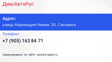 ДиасАвтоРус по адресу улица Нормандия-Неман, 35, Смоленск в дальнейшем Организация, размещена в следующих категориях: