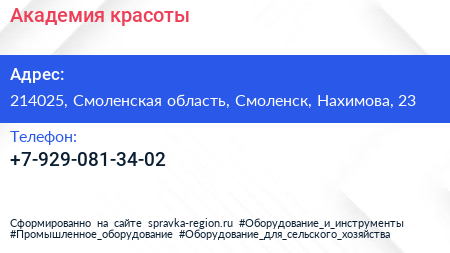 Академия красоты по адресу 214025, Смоленская область, Смоленск, Нахимова, 23 в дальнейшем Организация, размещена в следующих категориях: