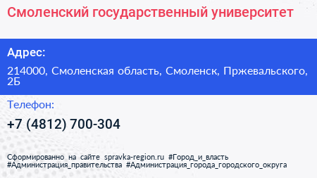 Смоленский государственный университет по адресу 214000, Смоленская область, Смоленск, Пржевальского, 2Б в дальнейшем Организация, размещена в следующих категориях: