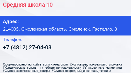 Средняя школа №10 по адресу 214005, Смоленская область, Смоленск, Гастелло, 8 в дальнейшем Организация, размещена в следующих категориях: