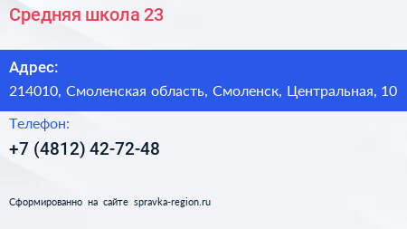 Средняя школа №23 по адресу 214010, Смоленская область, Смоленск, Центральная, 10 в дальнейшем Организация, размещена в следующих категориях: