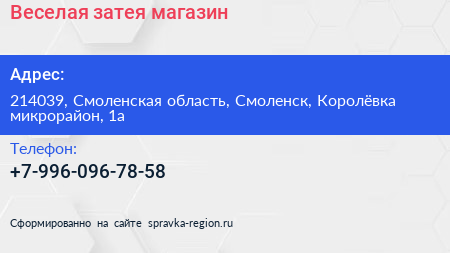 Веселая затея, магазин по адресу 214039, Смоленская область, Смоленск, Королёвка микрорайон, 1а в дальнейшем Организация, размещена в следующих категориях: