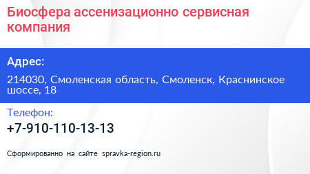 Биосфера, ассенизационно-сервисная компания по адресу 214030, Смоленская область, Смоленск, Краснинское шоссе, 18 в дальнейшем Организация, размещена в следующих категориях: