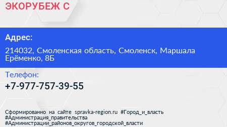 ЭКОРУБЕЖ-С по адресу 214032, Смоленская область, Смоленск, Маршала Ерёменко, 8Б в дальнейшем Организация, размещена в следующих категориях: