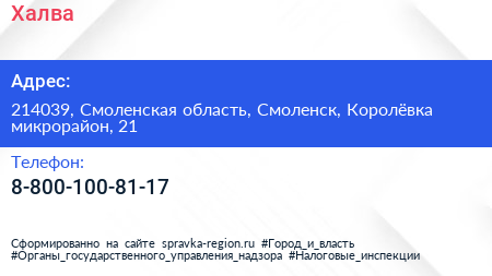 Халва по адресу 214039, Смоленская область, Смоленск, Королёвка микрорайон, 21 в дальнейшем Организация, размещена в следующих категориях: