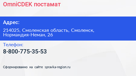 OmniCDEK, постамат по адресу 214025, Смоленская область, Смоленск, Нормандия-Неман, 26 в дальнейшем Организация, размещена в следующих категориях: