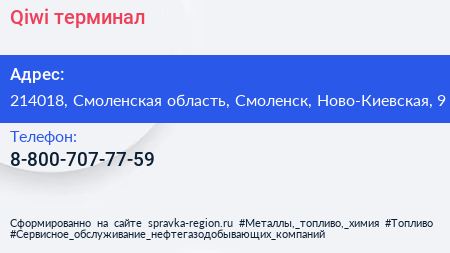 Qiwi, терминал по адресу 214018, Смоленская область, Смоленск, Ново-Киевская, 9 в дальнейшем Организация, размещена в следующих категориях: