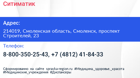 Ситиматик по адресу 214019, Смоленская область, Смоленск, проспект Строителей, 23 в дальнейшем Организация, размещена в следующих категориях: