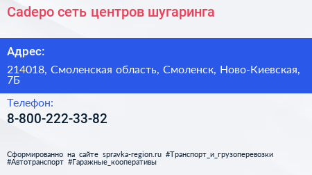 Cadepo, сеть центров шугаринга по адресу 214018, Смоленская область, Смоленск, Ново-Киевская, 7Б в дальнейшем Организация, размещена в следующих категориях: