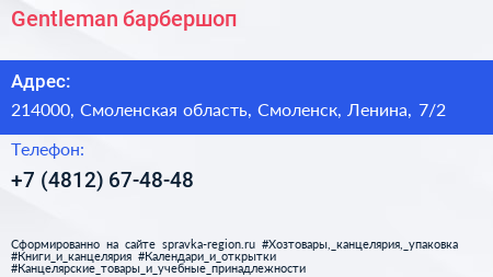 Gentleman, барбершоп по адресу 214000, Смоленская область, Смоленск, Ленина, 7/2 в дальнейшем Организация, размещена в следующих категориях: