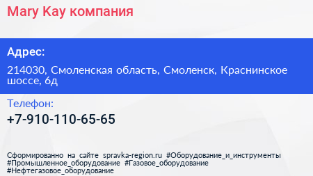 Mary Kay, компания по адресу 214030, Смоленская область, Смоленск, Краснинское шоссе, 6д в дальнейшем Организация, размещена в следующих категориях: