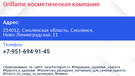 Oriflame, косметическая компания по адресу 214012, Смоленская область, Смоленск, Ново-Ленинградская, 11 в дальнейшем Организация, размещена в следующих категориях: