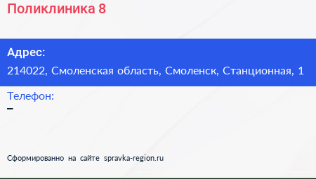 Поликлиника №8 по адресу 214022, Смоленская область, Смоленск, Станционная, 1 в дальнейшем Организация, размещена в следующих категориях:
