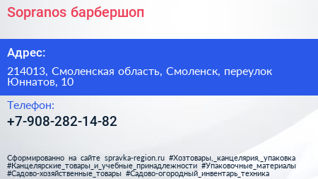 Sopranos, барбершоп по адресу 214013, Смоленская область, Смоленск, переулок Юннатов, 10 в дальнейшем Организация, размещена в следующих категориях: