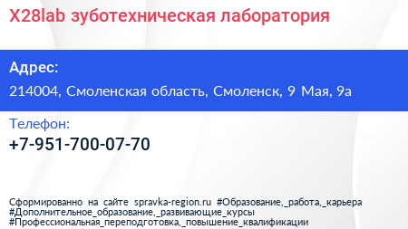 X28lab, зуботехническая лаборатория по адресу 214004, Смоленская область, Смоленск, 9 Мая, 9а в дальнейшем Организация, размещена в следующих категориях: