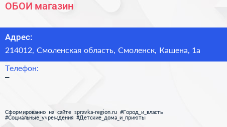 ОБОИ, магазин по адресу 214012, Смоленская область, Смоленск, Кашена, 1а в дальнейшем Организация, размещена в следующих категориях: