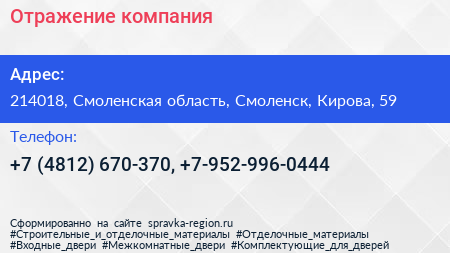 Отражение, компания по адресу 214018, Смоленская область, Смоленск, Кирова, 59 в дальнейшем Организация, размещена в следующих категориях: