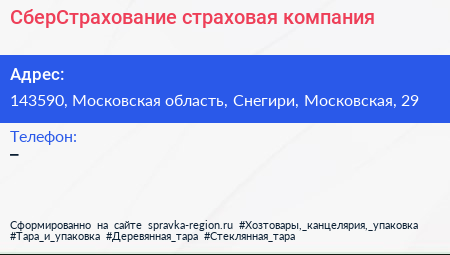 СберСтрахование, страховая компания по адресу 143590, Московская область, Снегири, Московская, 29 в дальнейшем Организация, размещена в следующих категориях: