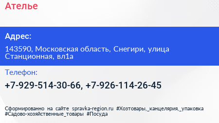Ателье по адресу 143590, Московская область, Снегири, улица Станционная, вл1а в дальнейшем Организация, размещена в следующих категориях: