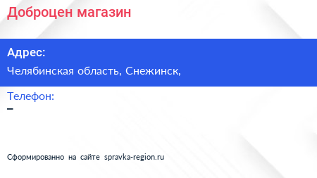 Доброцен, магазин по адресу Челябинская область, Снежинск, в дальнейшем Организация, размещена в следующих категориях:
