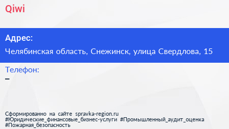 Qiwi по адресу Челябинская область, Снежинск, улица Свердлова, 15 в дальнейшем Организация, размещена в следующих категориях: