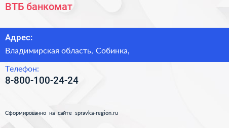 ВТБ, банкомат по адресу Владимирская область, Собинка, в дальнейшем Организация, размещена в следующих категориях: