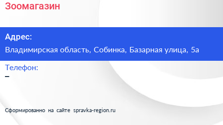 Зоомагазин по адресу Владимирская область, Собинка, Базарная улица, 5а в дальнейшем Организация, размещена в следующих категориях: