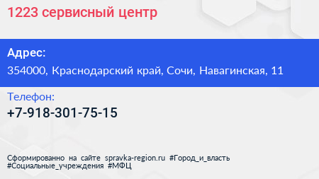 1223, сервисный центр по адресу 354000, Краснодарский край, Сочи, Навагинская, 11 в дальнейшем Организация, размещена в следующих категориях: