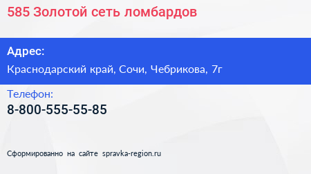 585*Золотой, сеть ломбардов по адресу Краснодарский край, Сочи, Чебрикова, 7г в дальнейшем Организация, размещена в следующих категориях: